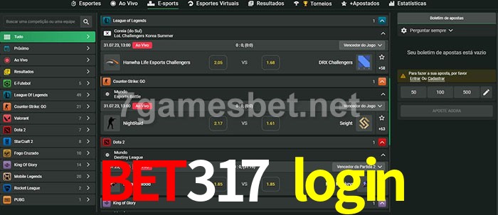 A aposta bet317 login oferece aos jogadores a experiência mais conveniente de apostas em eSports!